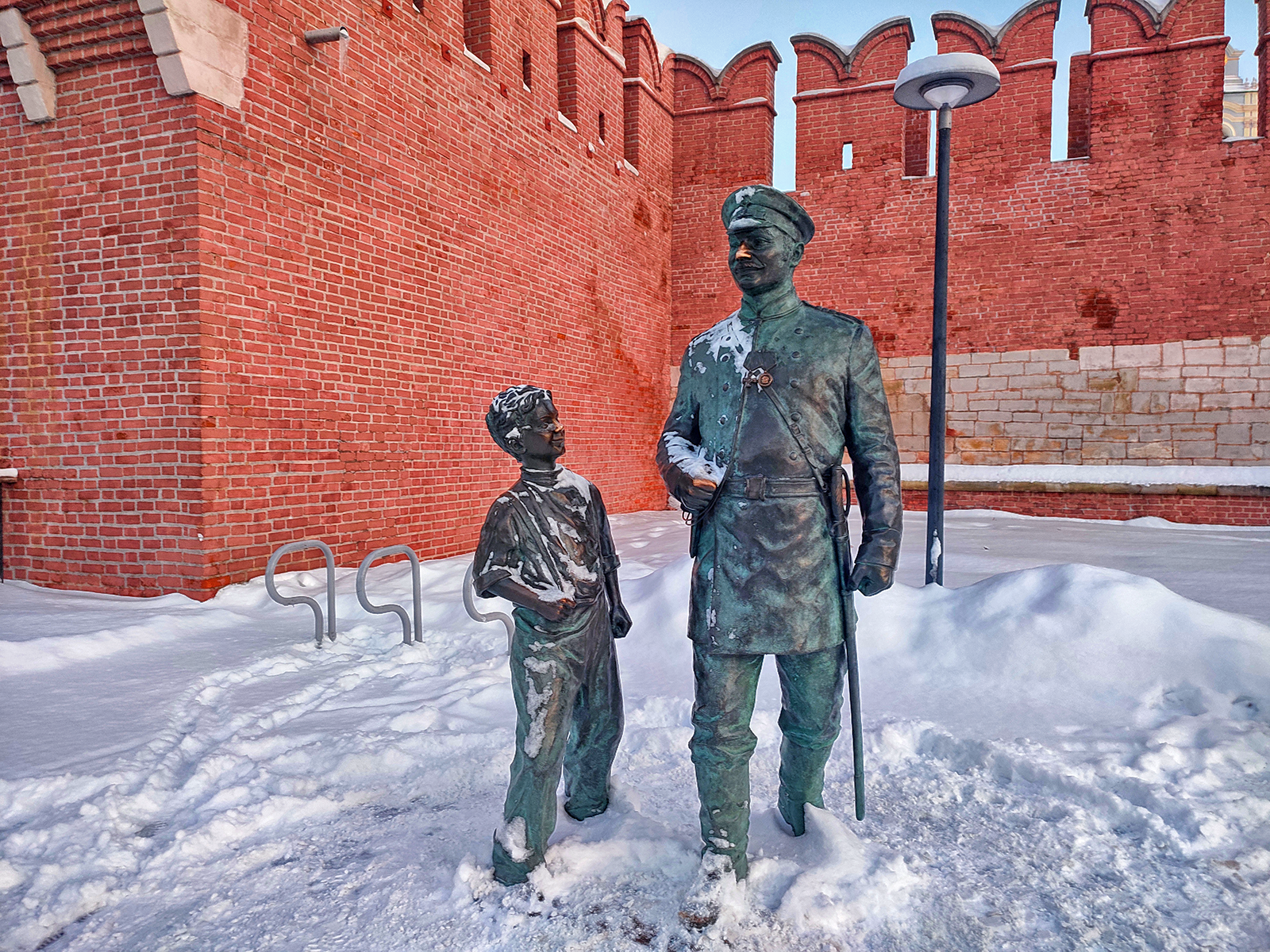 Единственное отступление от исторического оригинала — на фуражке вместо личного номера размещён номер Тульской области — 71. Памятник Тульскому городовому легко найти, он находится у Пятницкой башни Тульского Кремля, справа от входа.