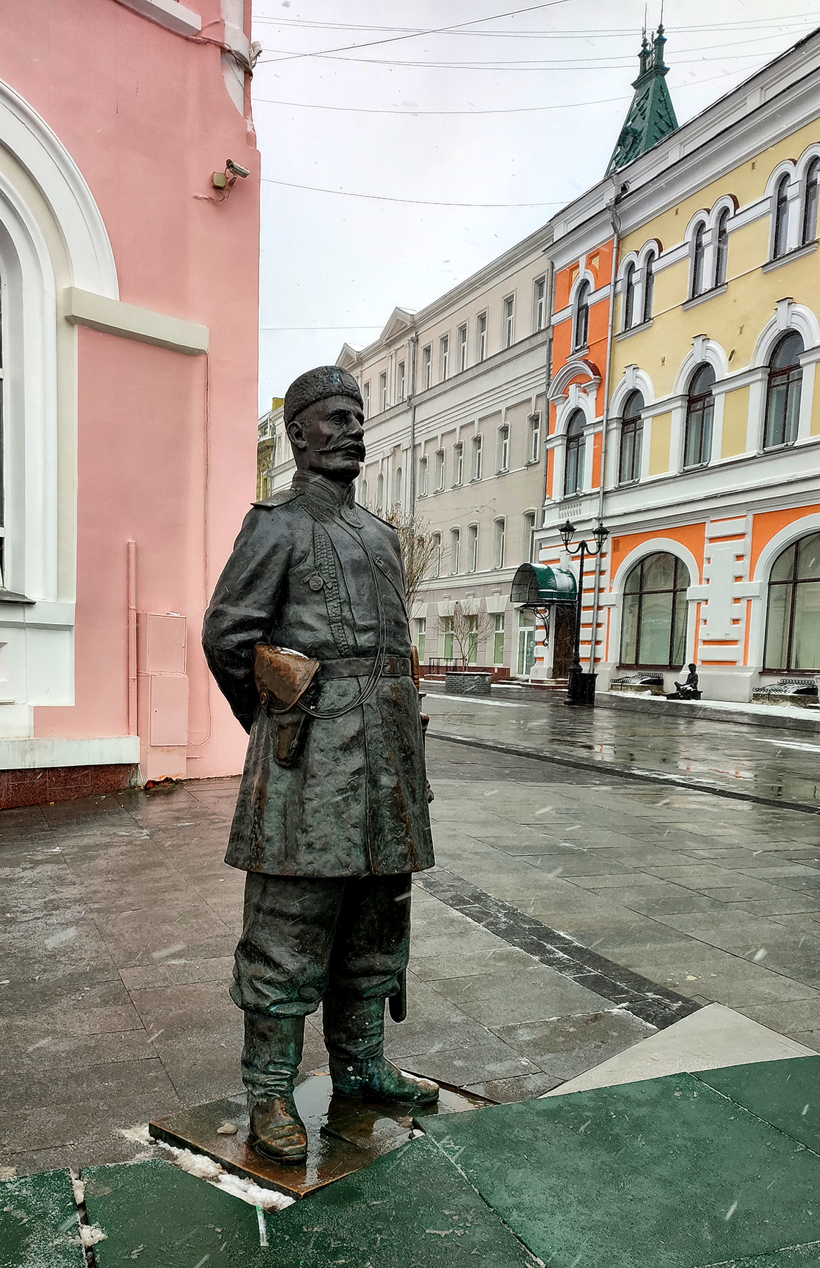 В Нижнем Новгороде в начале улицы Большая Покровская, перед выходом на площадь Минина и Пожарского, возвышается скульптура городового. Эта жанровая композиция открывает серию тематических скульптур, посвящённых нижегородцам дореволюционного периода.